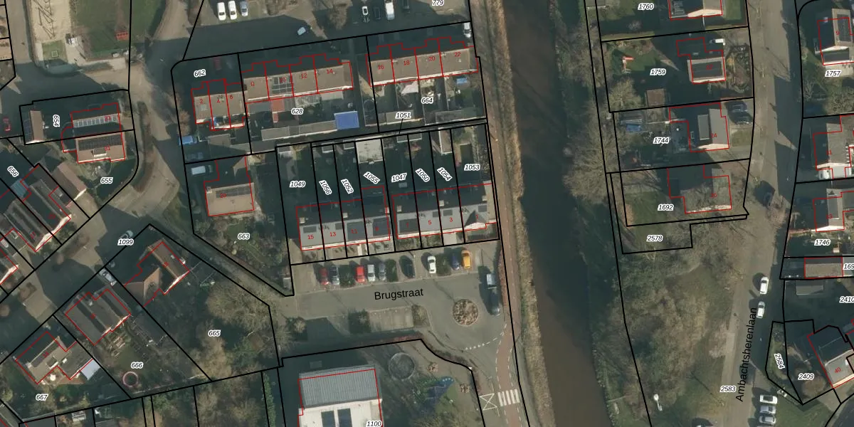Brugstraat 5 is gelegen op kadastraal perceel WPK01O1050. Deze kadastrale aanduiding is uniek en wordt gebruikt door het Kadaster om eigendomsrechten en andere zakelijke rechten vast te leggen. Het perceel maakt onderdeel uit van de kadastrale gemeente Waspik.