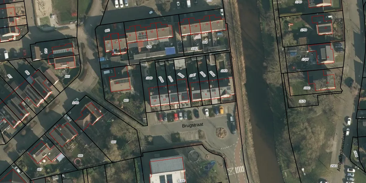 Het perceel waarop Brugstraat 9 staat heeft een oppervlakte van 168 m². Dit is een middelgroot perceel. De perceeloppervlakte wordt geregistreerd door het Kadaster. Gedetailleerde informatie over de maten van dit perceel kunt u vinden in het rapport Kadastrale kaart met maatvoering van Brugstraat 9.