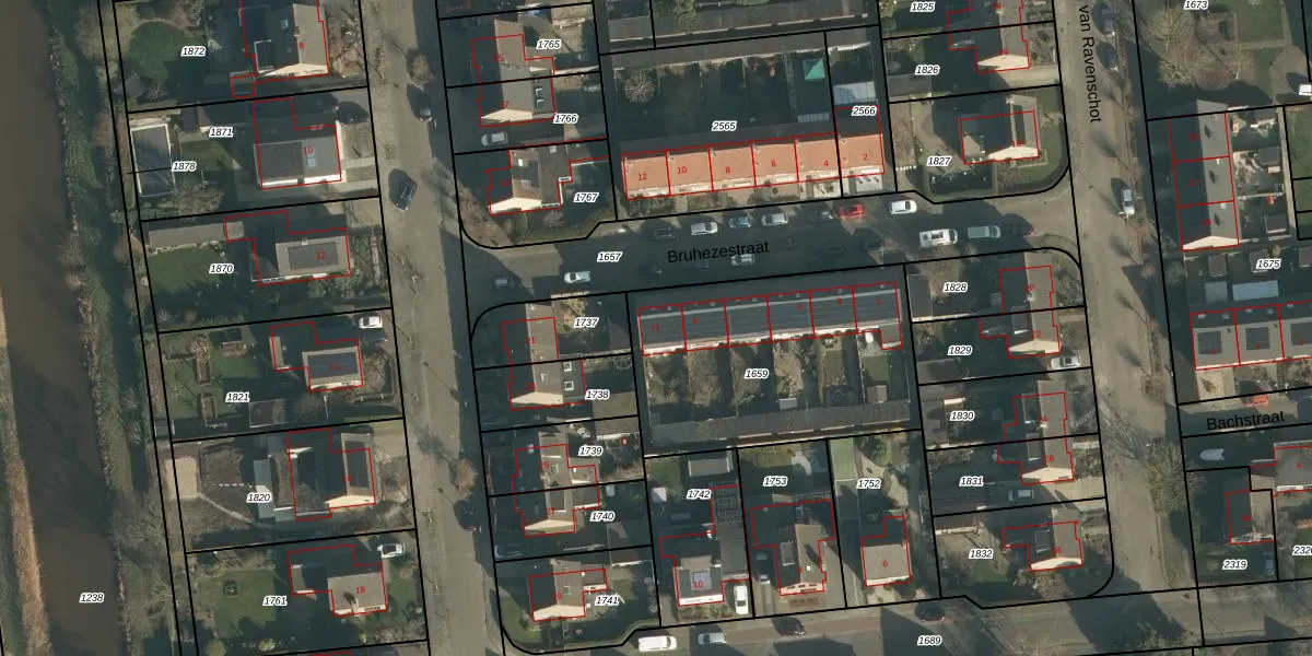Het perceel waarop Bruhezestraat 11 staat heeft een oppervlakte van 1109 m². Dit is een zeer groot perceel. De perceeloppervlakte wordt geregistreerd door het Kadaster. Gedetailleerde informatie over de maten van dit perceel kunt u vinden in het rapport Kadastrale kaart met maatvoering van Bruhezestraat 11.