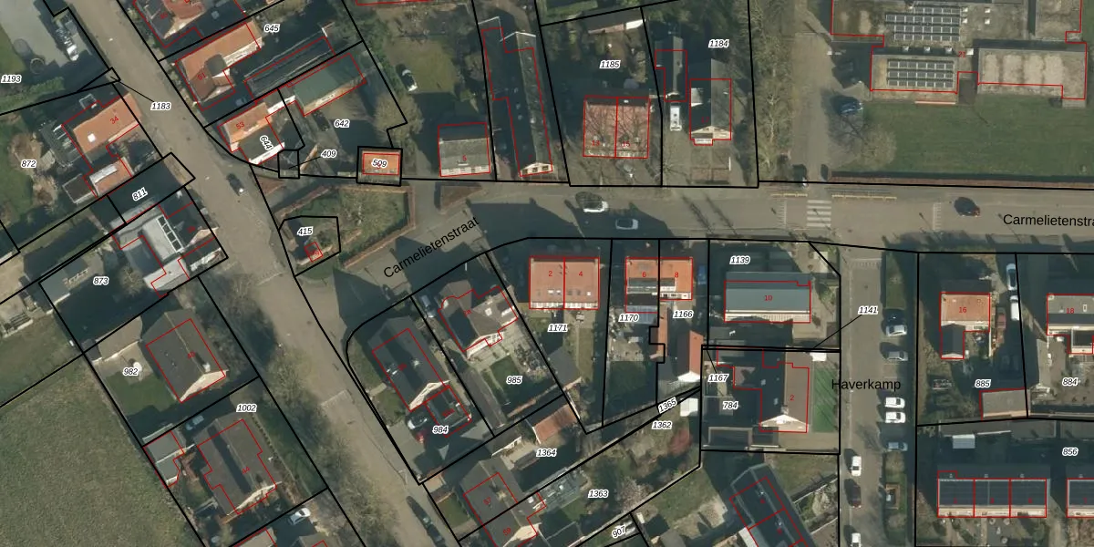 Het perceel waarop Carmelietenstraat 2 staat heeft een oppervlakte van 477 m². Dit is een groot perceel. De perceeloppervlakte wordt geregistreerd door het Kadaster. Gedetailleerde informatie over de maten van dit perceel kunt u vinden in het rapport Kadastrale kaart met maatvoering van Carmelietenstraat 2.