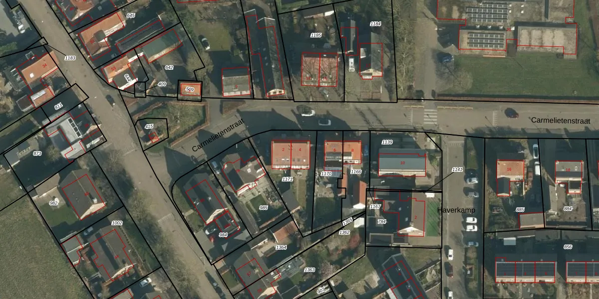 Het perceel waarop Carmelietenstraat 4 staat heeft een oppervlakte van 477 m². Dit is een groot perceel. De perceeloppervlakte wordt geregistreerd door het Kadaster. Gedetailleerde informatie over de maten van dit perceel kunt u vinden in het rapport Kadastrale kaart met maatvoering van Carmelietenstraat 4.