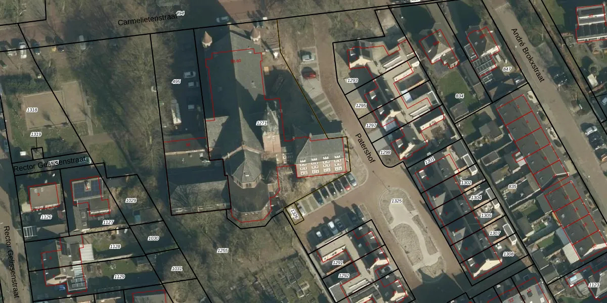 Het perceel waarop Carmelietenstraat 60-k staat heeft een oppervlakte van 2142 m². Dit is een zeer groot perceel. De perceeloppervlakte wordt geregistreerd door het Kadaster. Gedetailleerde informatie over de maten van dit perceel kunt u vinden in het rapport Kadastrale kaart met maatvoering van Carmelietenstraat 60-k.