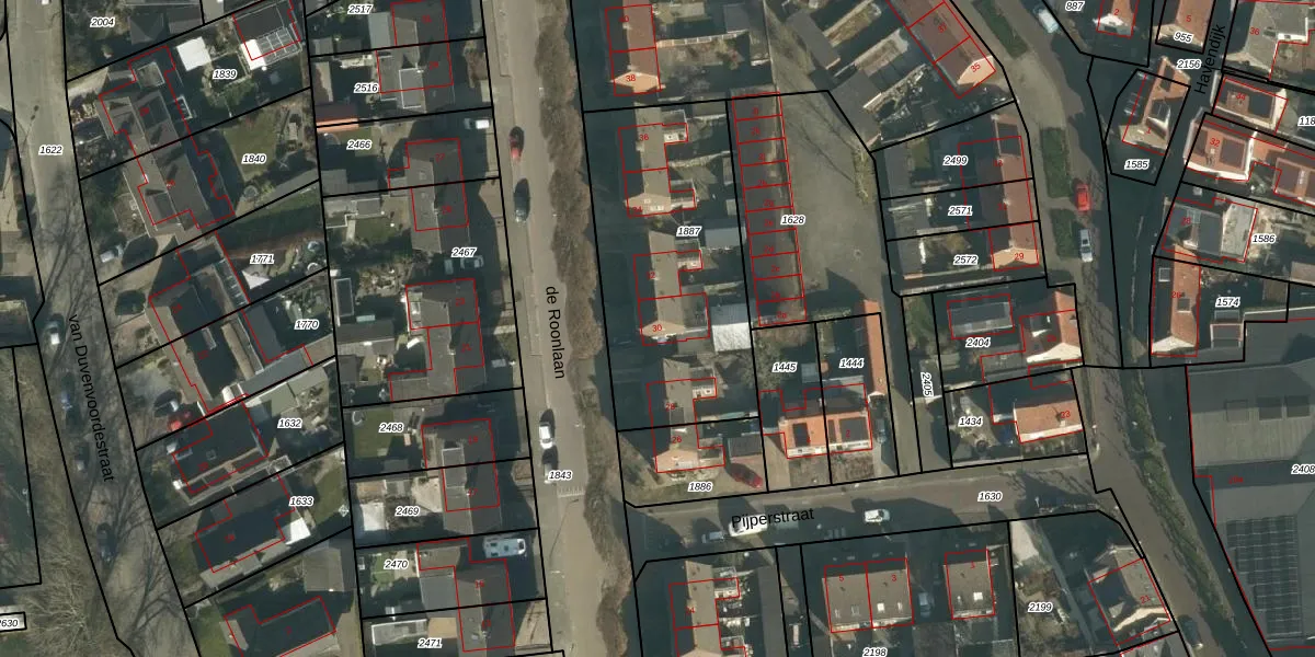 Het perceel waarop de Roonlaan 30 staat heeft een oppervlakte van 1072 m². Dit is een zeer groot perceel. De perceeloppervlakte wordt geregistreerd door het Kadaster. Gedetailleerde informatie over de maten van dit perceel kunt u vinden in het rapport Kadastrale kaart met maatvoering van de Roonlaan 30.
