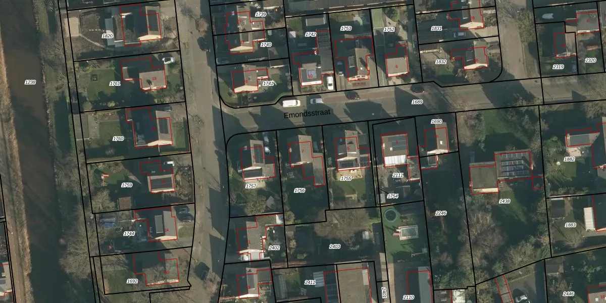 Het perceel waarop Emondsstraat 7 staat heeft een oppervlakte van 479 m². Dit is een groot perceel. De perceeloppervlakte wordt geregistreerd door het Kadaster. Gedetailleerde informatie over de maten van dit perceel kunt u vinden in het rapport Kadastrale kaart met maatvoering van Emondsstraat 7.