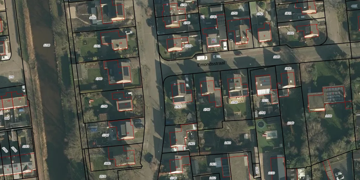 Het perceel waarop Emondsstraat 9 staat heeft een oppervlakte van 472 m². Dit is een groot perceel. De perceeloppervlakte wordt geregistreerd door het Kadaster. Gedetailleerde informatie over de maten van dit perceel kunt u vinden in het rapport Kadastrale kaart met maatvoering van Emondsstraat 9.