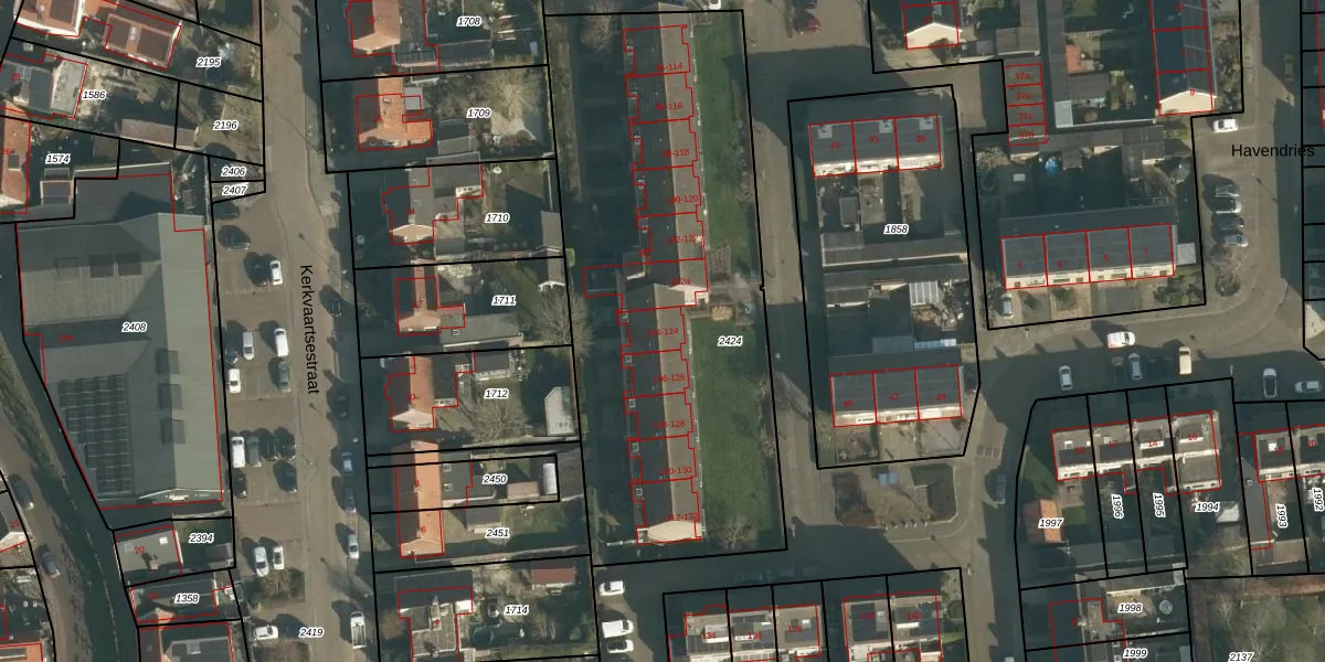 Het perceel waarop Havendries 104 staat heeft een oppervlakte van 2465 m². Dit is een zeer groot perceel. De perceeloppervlakte wordt geregistreerd door het Kadaster. Gedetailleerde informatie over de maten van dit perceel kunt u vinden in het rapport Kadastrale kaart met maatvoering van Havendries 104.
