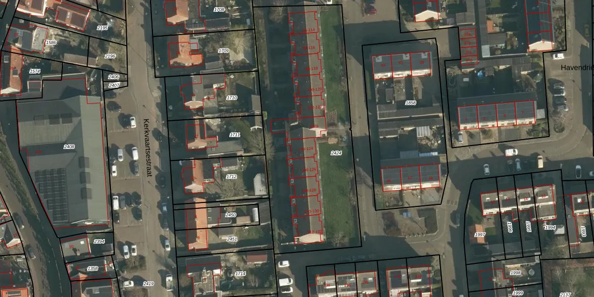 Het perceel waarop Havendries 124 staat heeft een oppervlakte van 2465 m². Dit is een zeer groot perceel. De perceeloppervlakte wordt geregistreerd door het Kadaster. Gedetailleerde informatie over de maten van dit perceel kunt u vinden in het rapport Kadastrale kaart met maatvoering van Havendries 124.