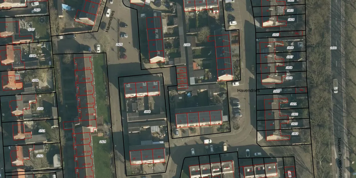 Het perceel waarop Havendries 37-d staat heeft een oppervlakte van 4101 m². Dit is een zeer groot perceel. De perceeloppervlakte wordt geregistreerd door het Kadaster. Gedetailleerde informatie over de maten van dit perceel kunt u vinden in het rapport Kadastrale kaart met maatvoering van Havendries 37-d.