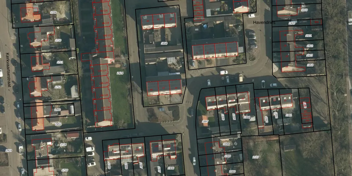 Het perceel waarop Havendries 49 staat heeft een oppervlakte van 1397 m². Dit is een zeer groot perceel. De perceeloppervlakte wordt geregistreerd door het Kadaster. Gedetailleerde informatie over de maten van dit perceel kunt u vinden in het rapport Kadastrale kaart met maatvoering van Havendries 49.