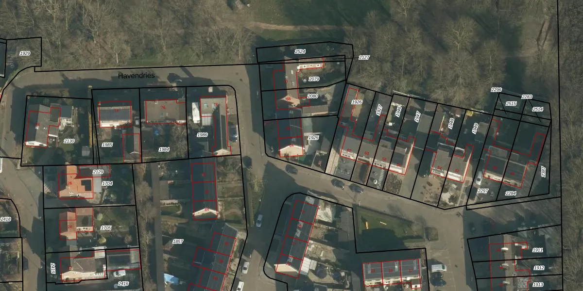 Het perceel waarop Havendries 64 staat heeft een oppervlakte van 381 m². Dit is een groot perceel. De perceeloppervlakte wordt geregistreerd door het Kadaster. Gedetailleerde informatie over de maten van dit perceel kunt u vinden in het rapport Kadastrale kaart met maatvoering van Havendries 64.