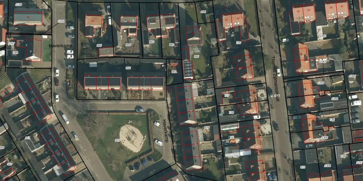Het perceel waarop Haverkamp 13 staat heeft een oppervlakte van 1400 m². Dit is een zeer groot perceel. De perceeloppervlakte wordt geregistreerd door het Kadaster. Gedetailleerde informatie over de maten van dit perceel kunt u vinden in het rapport Kadastrale kaart met maatvoering van Haverkamp 13.