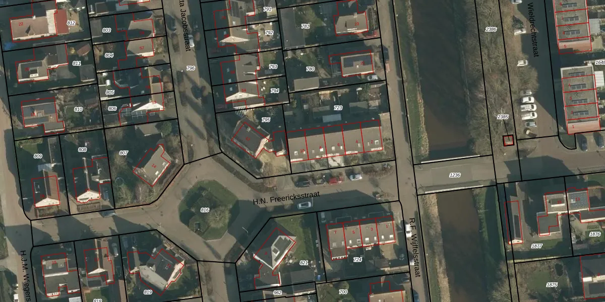 H.N. Freericksstraat 10 is gelegen op kadastraal perceel WPK01O723. Deze kadastrale aanduiding is uniek en wordt gebruikt door het Kadaster om eigendomsrechten en andere zakelijke rechten vast te leggen. Het perceel maakt onderdeel uit van de kadastrale gemeente Waspik.