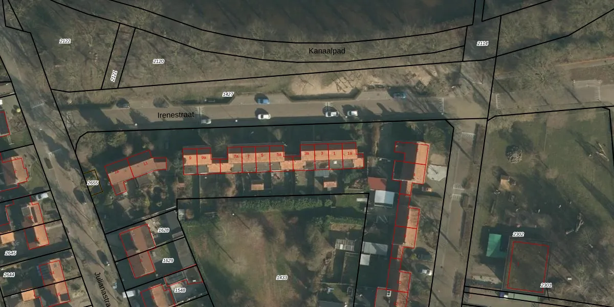 Het perceel waarop Irenestraat 3-a staat heeft een oppervlakte van 5512 m². Dit is een zeer groot perceel. De perceeloppervlakte wordt geregistreerd door het Kadaster. Gedetailleerde informatie over de maten van dit perceel kunt u vinden in het rapport Kadastrale kaart met maatvoering van Irenestraat 3-a.