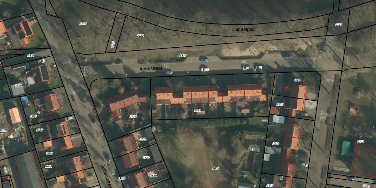 Het perceel waarop Irenestraat 7-a staat heeft een oppervlakte van 1455 m². Dit is een zeer groot perceel. De perceeloppervlakte wordt geregistreerd door het Kadaster. Gedetailleerde informatie over de maten van dit perceel kunt u vinden in het rapport Kadastrale kaart met maatvoering van Irenestraat 7-a.