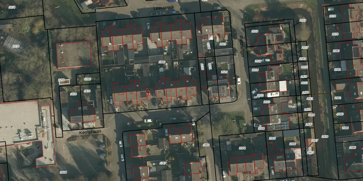 Het perceel waarop Kemphaan 33 staat heeft een oppervlakte van 2801 m². Dit is een zeer groot perceel. De perceeloppervlakte wordt geregistreerd door het Kadaster. Gedetailleerde informatie over de maten van dit perceel kunt u vinden in het rapport Kadastrale kaart met maatvoering van Kemphaan 33.