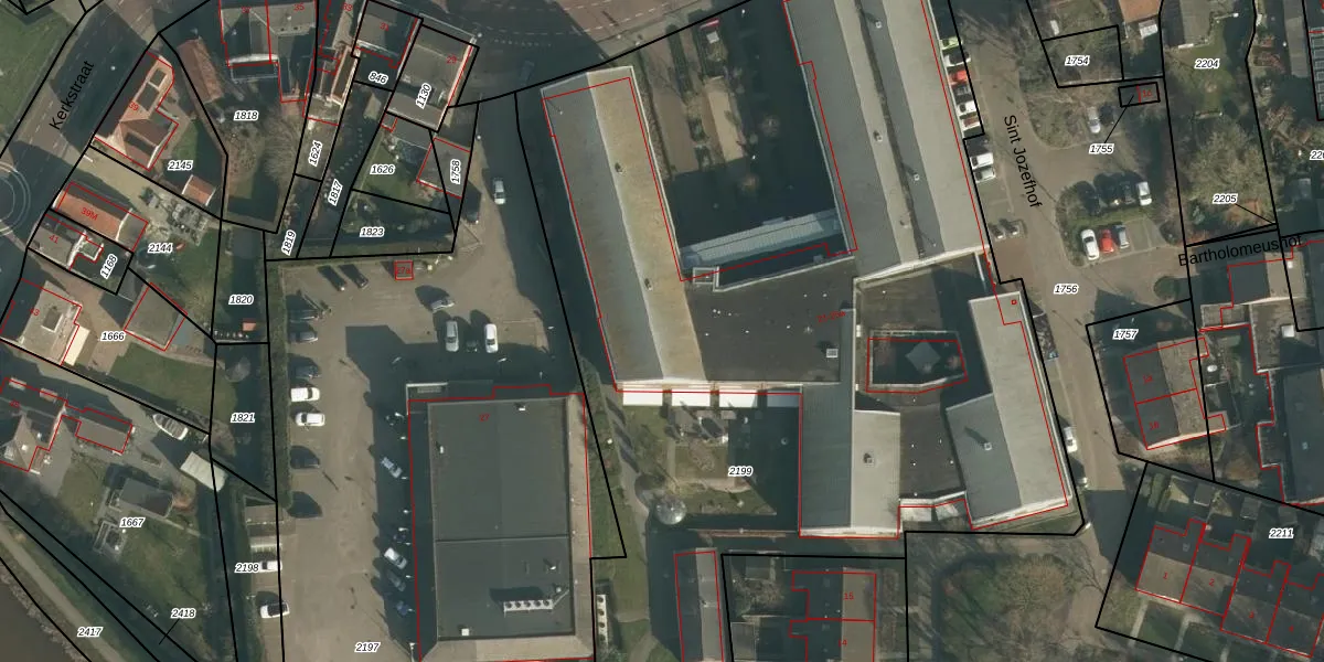 Het perceel waarop Kerkstraat 25-d staat heeft een oppervlakte van 6292 m². Dit is een zeer groot perceel. De perceeloppervlakte wordt geregistreerd door het Kadaster. Gedetailleerde informatie over de maten van dit perceel kunt u vinden in het rapport Kadastrale kaart met maatvoering van Kerkstraat 25-d.