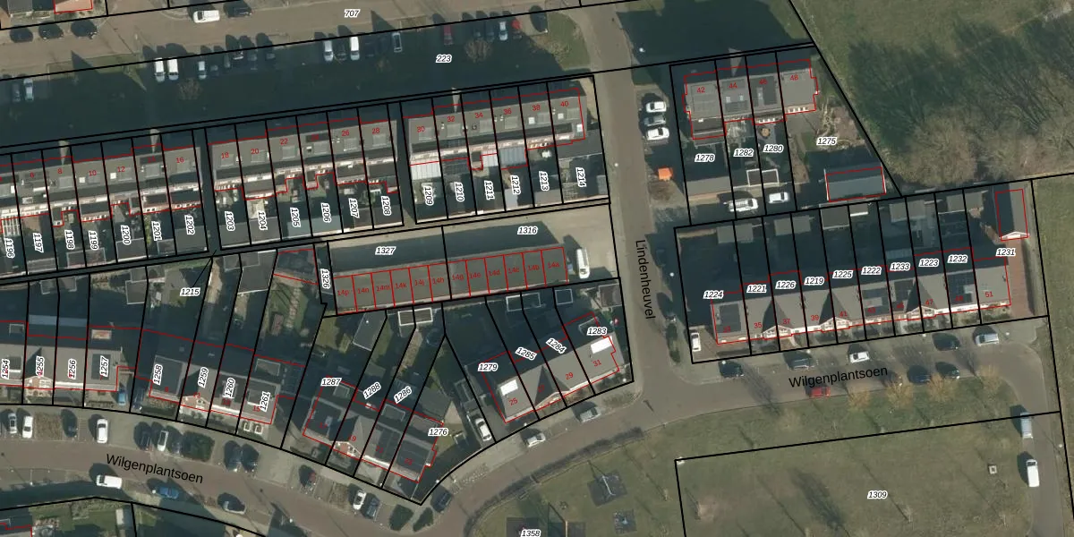 Het perceel waarop Lindenheuvel 14-b staat heeft een oppervlakte van 447 m². Dit is een groot perceel. De perceeloppervlakte wordt geregistreerd door het Kadaster. Gedetailleerde informatie over de maten van dit perceel kunt u vinden in het rapport Kadastrale kaart met maatvoering van Lindenheuvel 14-b.