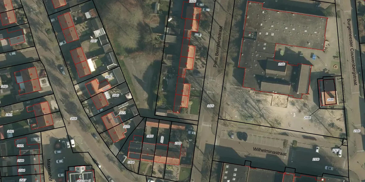 Het perceel waarop Prins Bernhardstraat 22 staat heeft een oppervlakte van 5512 m². Dit is een zeer groot perceel. De perceeloppervlakte wordt geregistreerd door het Kadaster. Gedetailleerde informatie over de maten van dit perceel kunt u vinden in het rapport Kadastrale kaart met maatvoering van Prins Bernhardstraat 22.