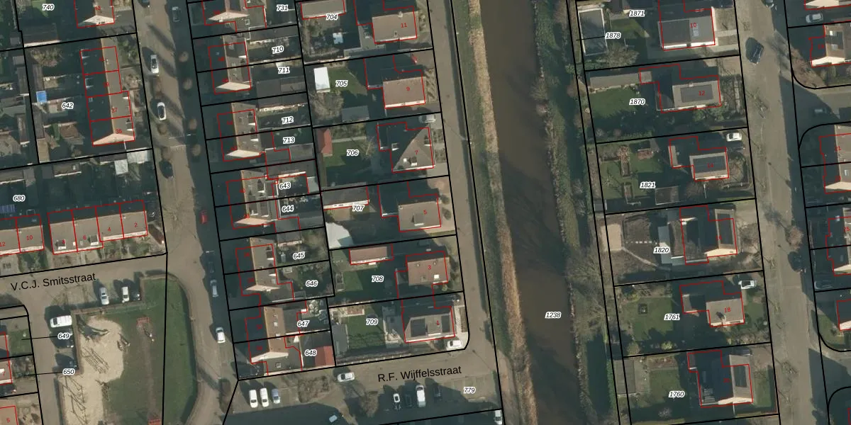 R.F. Wijffelsstraat 5 is gelegen op kadastraal perceel WPK01O707. Deze kadastrale aanduiding is uniek en wordt gebruikt door het Kadaster om eigendomsrechten en andere zakelijke rechten vast te leggen. Het perceel maakt onderdeel uit van de kadastrale gemeente Waspik.