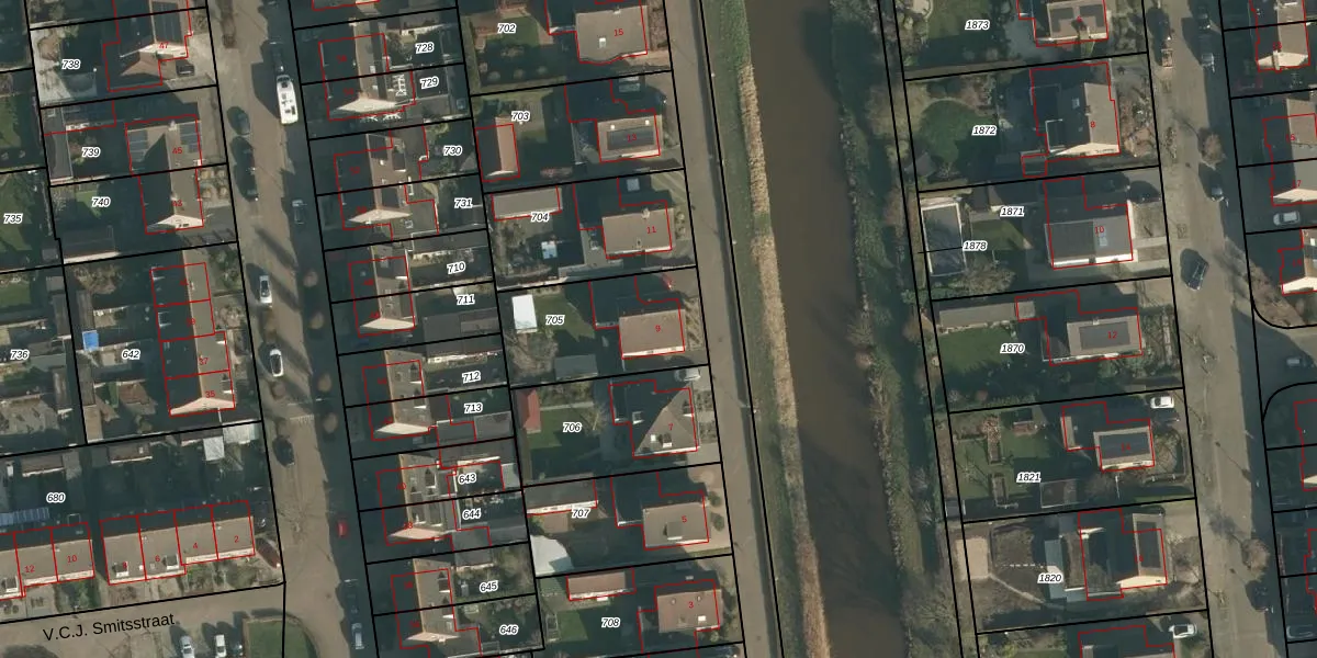 Gebruik de zoekbalk of klik op een perceel voor informatie over de adressen binnen dit perceel.