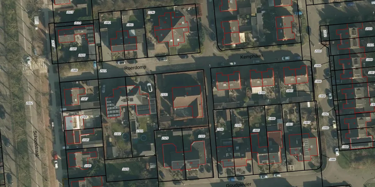 Gebruik de zoekbalk of klik op een perceel voor informatie over de adressen binnen dit perceel.