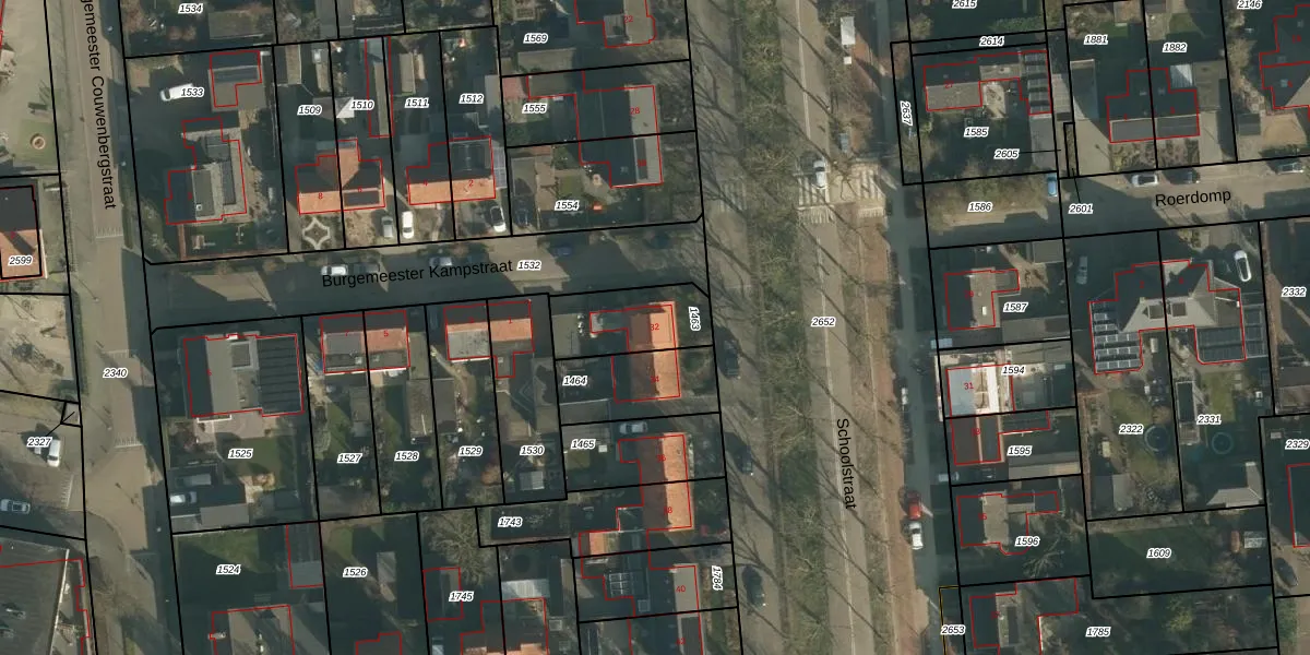 Het perceel waarop Schoolstraat 32 staat heeft een oppervlakte van 241 m². Dit is een middelgroot perceel. De perceeloppervlakte wordt geregistreerd door het Kadaster. Gedetailleerde informatie over de maten van dit perceel kunt u vinden in het rapport Kadastrale kaart met maatvoering van Schoolstraat 32.