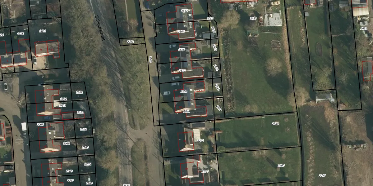 Gebruik de zoekbalk of klik op een perceel voor informatie over de adressen binnen dit perceel.