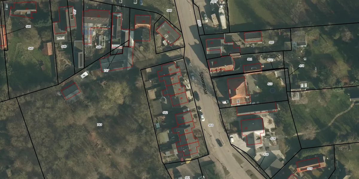 Spoorstraat 36 is gelegen op kadastraal perceel WPK01O552. Deze kadastrale aanduiding is uniek en wordt gebruikt door het Kadaster om eigendomsrechten en andere zakelijke rechten vast te leggen. Het perceel maakt onderdeel uit van de kadastrale gemeente Waspik.