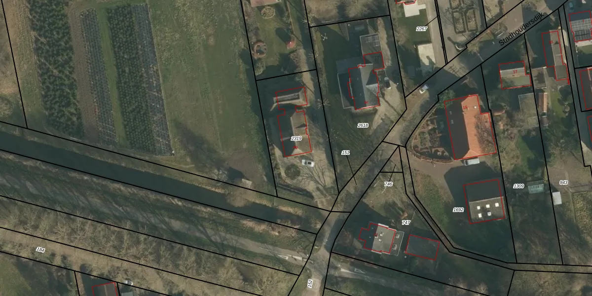 Stadhoudersdijk 4-g is gelegen op kadastraal perceel WPK01F2319. Deze kadastrale aanduiding is uniek en wordt gebruikt door het Kadaster om eigendomsrechten en andere zakelijke rechten vast te leggen. Het perceel maakt onderdeel uit van de kadastrale gemeente Waspik.