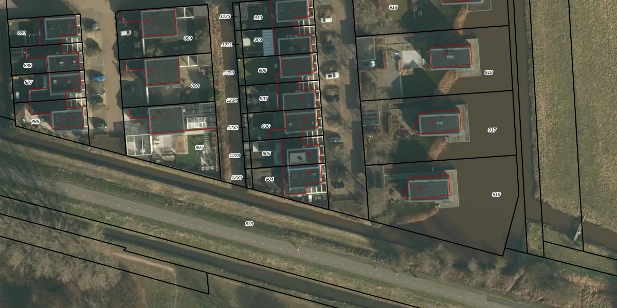 Gebruik de zoekbalk of klik op een perceel voor informatie over de adressen binnen dit perceel.