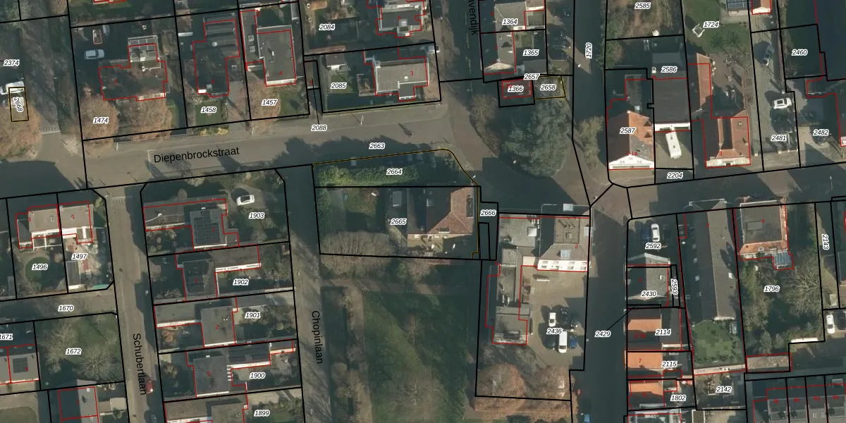 Het adres is gelegen op perceel 2665 in de sectie G en de kadastrale gemeente Waspik. De kadastrale aanduiding is aldus WPK01-G-2665. Het perceel is 623 m² groot. Dat is kleiner dan de gemiddelde perceeloppervlakte in Waspik, dat op 5076,07 m² ligt. Het kleinste perceel in de kadastrale gemeente is 1 m² groot. De grootste perceeloppervlakte is 21,0 ha. Op het perceel zijn 13 adressen aanwezig. De huidige grenzen van het perceel zijn digitaal in de Basisregistratie Kadaster (BRK) geregistreerd op 11-10-2024.