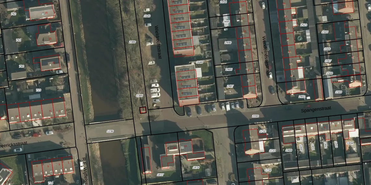 Wieldrechtstraat 2 is gelegen op kadastraal perceel WPK01G1648. Deze kadastrale aanduiding is uniek en wordt gebruikt door het Kadaster om eigendomsrechten en andere zakelijke rechten vast te leggen. Het perceel maakt onderdeel uit van de kadastrale gemeente Waspik.