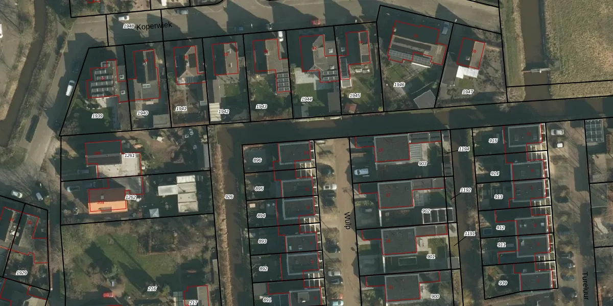 Gebruik de zoekbalk of klik op een perceel voor informatie over de adressen binnen dit perceel.