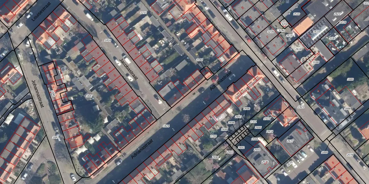 Het perceel waarop Adrianastraat 8 staat heeft een oppervlakte van 3918 m². Dit is een zeer groot perceel. De perceeloppervlakte wordt geregistreerd door het Kadaster. Gedetailleerde informatie over de maten van dit perceel kunt u vinden in het rapport Kadastrale kaart met maatvoering van Adrianastraat 8.