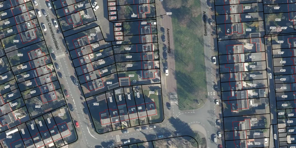 Gebruik de zoekbalk of klik op een perceel voor informatie over de adressen binnen dit perceel.