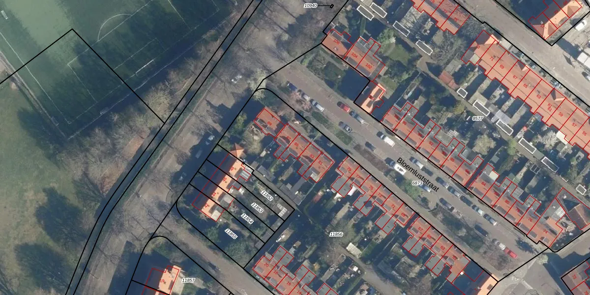 Het perceel waarop Bloemluststraat 85 staat heeft een oppervlakte van 4479 m². Dit is een zeer groot perceel. De perceeloppervlakte wordt geregistreerd door het Kadaster. Gedetailleerde informatie over de maten van dit perceel kunt u vinden in het rapport Kadastrale kaart met maatvoering van Bloemluststraat 85.