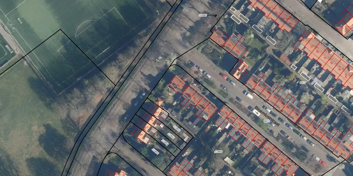 Het perceel waarop Bloemluststraat 89 staat heeft een oppervlakte van 4479 m². Dit is een zeer groot perceel. De perceeloppervlakte wordt geregistreerd door het Kadaster. Gedetailleerde informatie over de maten van dit perceel kunt u vinden in het rapport Kadastrale kaart met maatvoering van Bloemluststraat 89.