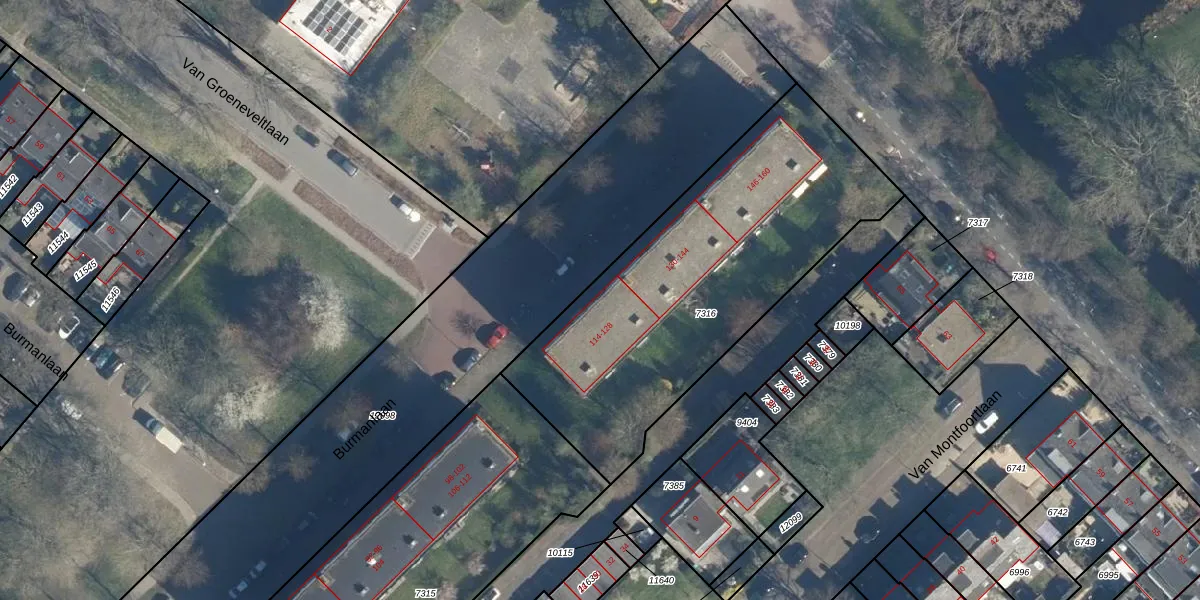 Het perceel waarop Burmanlaan 122 staat heeft een oppervlakte van 1666 m². Dit is een zeer groot perceel. De perceeloppervlakte wordt geregistreerd door het Kadaster. Gedetailleerde informatie over de maten van dit perceel kunt u vinden in het rapport Kadastrale kaart met maatvoering van Burmanlaan 122.
