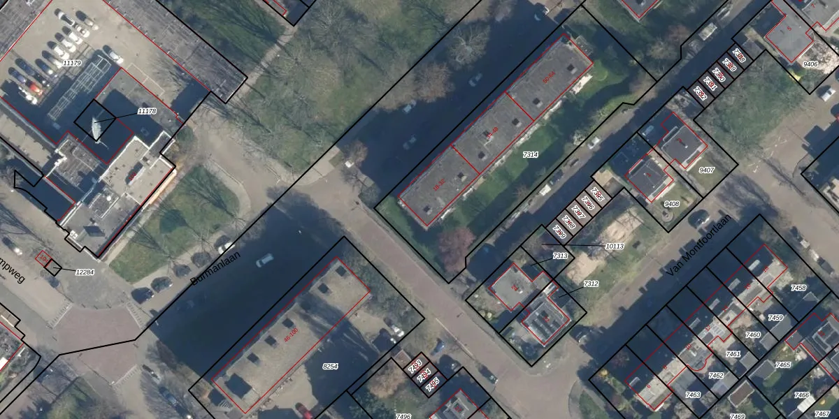 Het perceel waarop Burmanlaan 22 staat heeft een oppervlakte van 1667 m². Dit is een zeer groot perceel. De perceeloppervlakte wordt geregistreerd door het Kadaster. Gedetailleerde informatie over de maten van dit perceel kunt u vinden in het rapport Kadastrale kaart met maatvoering van Burmanlaan 22.
