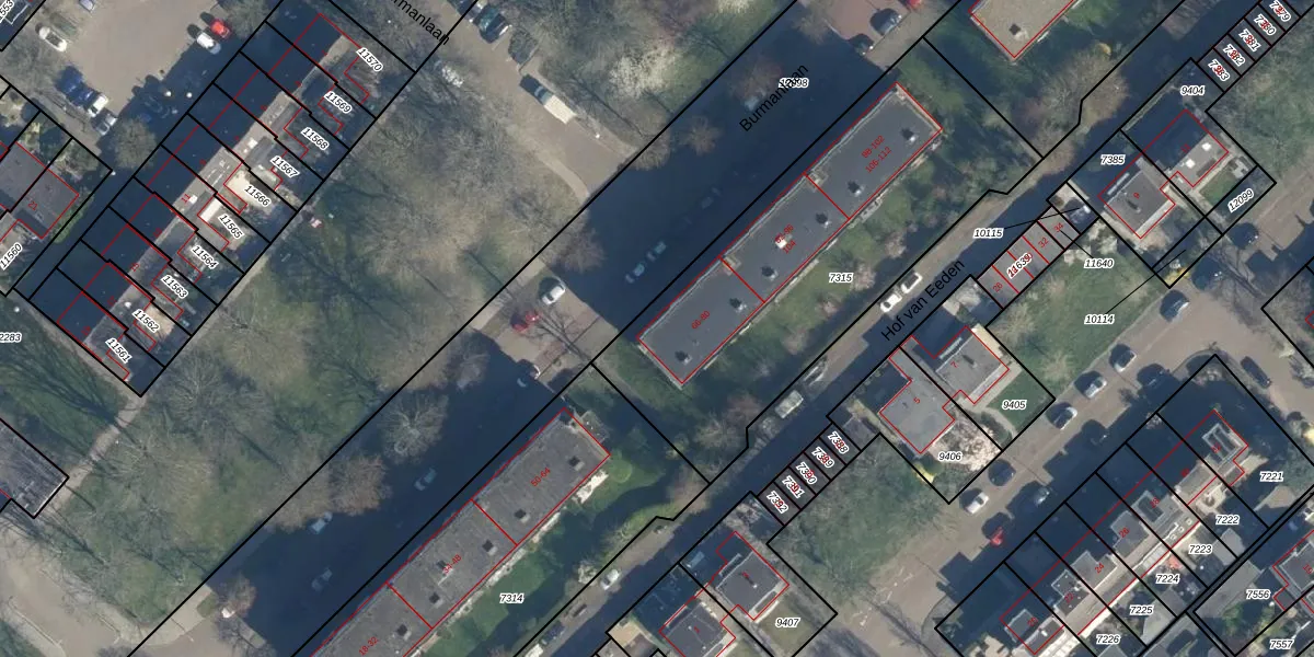 Het perceel waarop Burmanlaan 66 staat heeft een oppervlakte van 1716 m². Dit is een zeer groot perceel. De perceeloppervlakte wordt geregistreerd door het Kadaster. Gedetailleerde informatie over de maten van dit perceel kunt u vinden in het rapport Kadastrale kaart met maatvoering van Burmanlaan 66.