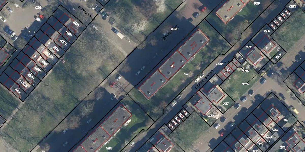 Het perceel waarop Burmanlaan 74 staat heeft een oppervlakte van 1716 m². Dit is een zeer groot perceel. De perceeloppervlakte wordt geregistreerd door het Kadaster. Gedetailleerde informatie over de maten van dit perceel kunt u vinden in het rapport Kadastrale kaart met maatvoering van Burmanlaan 74.