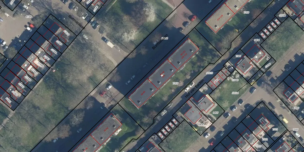 Het perceel waarop Burmanlaan 82 staat heeft een oppervlakte van 1716 m². Dit is een zeer groot perceel. De perceeloppervlakte wordt geregistreerd door het Kadaster. Gedetailleerde informatie over de maten van dit perceel kunt u vinden in het rapport Kadastrale kaart met maatvoering van Burmanlaan 82.