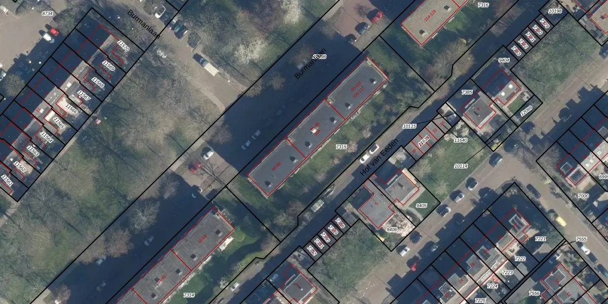 Het perceel waarop Burmanlaan 88 staat heeft een oppervlakte van 1716 m². Dit is een zeer groot perceel. De perceeloppervlakte wordt geregistreerd door het Kadaster. Gedetailleerde informatie over de maten van dit perceel kunt u vinden in het rapport Kadastrale kaart met maatvoering van Burmanlaan 88.