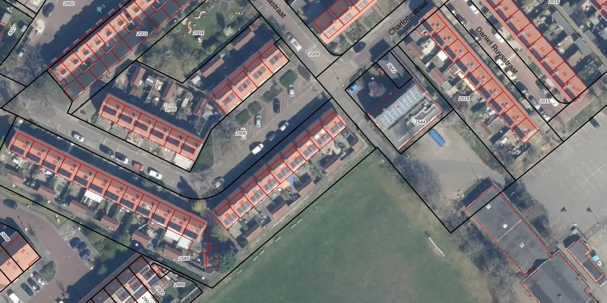 Het perceel waarop Charlottestraat 13 staat heeft een oppervlakte van 3149 m². Dit is een zeer groot perceel. De perceeloppervlakte wordt geregistreerd door het Kadaster. Gedetailleerde informatie over de maten van dit perceel kunt u vinden in het rapport Kadastrale kaart met maatvoering van Charlottestraat 13.