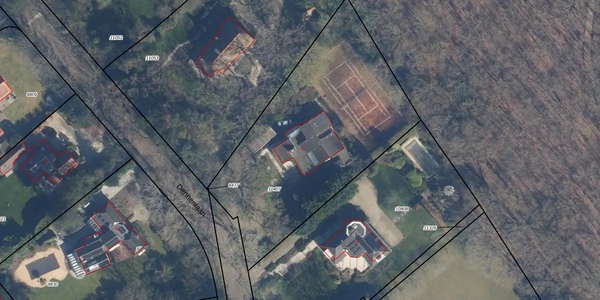 Het perceel waarop Dennenlaan 13 staat heeft een oppervlakte van 2945 m². Dit is een zeer groot perceel. De perceeloppervlakte wordt geregistreerd door het Kadaster. Gedetailleerde informatie over de maten van dit perceel kunt u vinden in het rapport Kadastrale kaart met maatvoering van Dennenlaan 13.