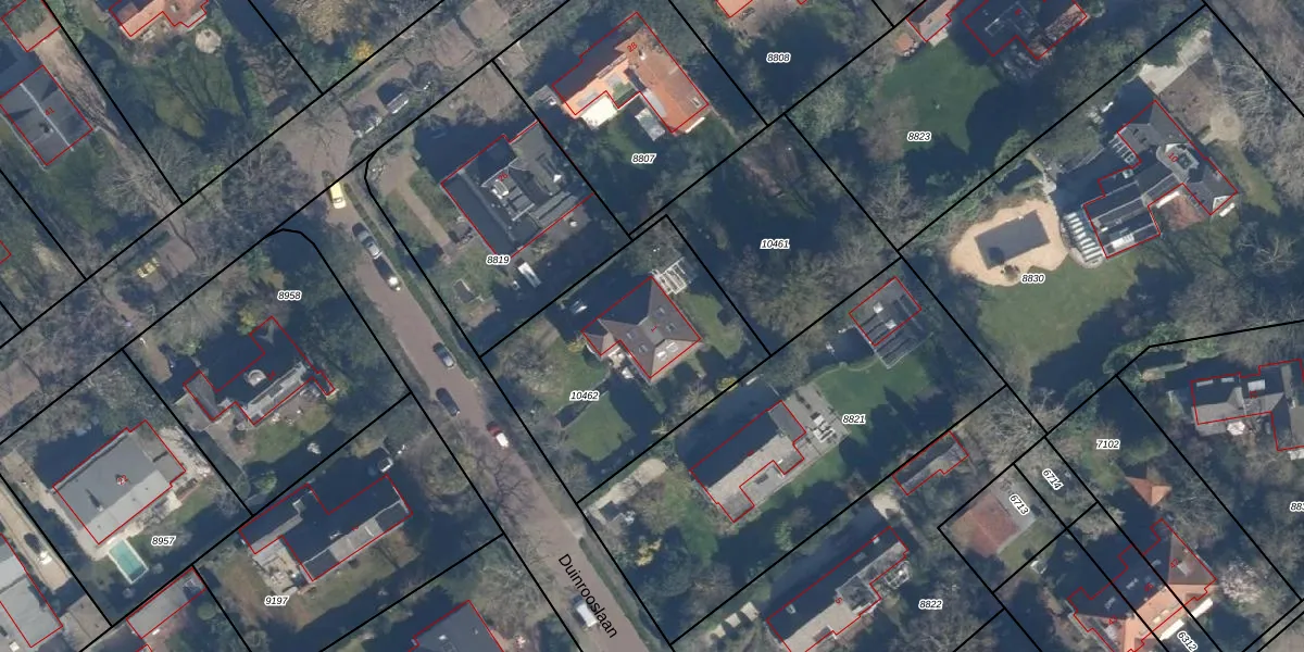 Het perceel waarop Duinrooslaan 1 staat heeft een oppervlakte van 985 m². Dit is een groot perceel. De perceeloppervlakte wordt geregistreerd door het Kadaster. Gedetailleerde informatie over de maten van dit perceel kunt u vinden in het rapport Kadastrale kaart met maatvoering van Duinrooslaan 1.