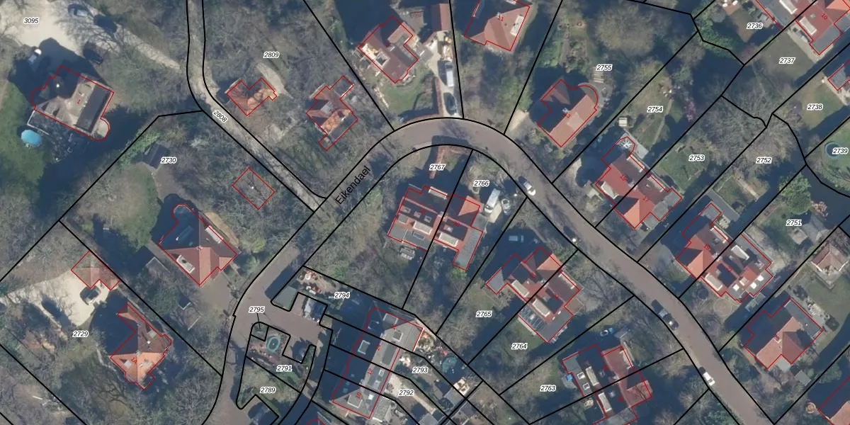 Het perceel waarop Eikendael 18 staat heeft een oppervlakte van 737 m². Dit is een groot perceel. De perceeloppervlakte wordt geregistreerd door het Kadaster. Gedetailleerde informatie over de maten van dit perceel kunt u vinden in het rapport Kadastrale kaart met maatvoering van Eikendael 18.