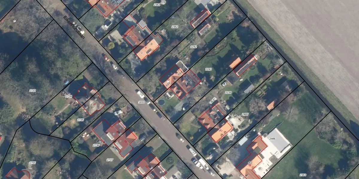 Het perceel waarop Eikenhorstlaan 13 staat heeft een oppervlakte van 1174 m². Dit is een zeer groot perceel. De perceeloppervlakte wordt geregistreerd door het Kadaster. Gedetailleerde informatie over de maten van dit perceel kunt u vinden in het rapport Kadastrale kaart met maatvoering van Eikenhorstlaan 13.