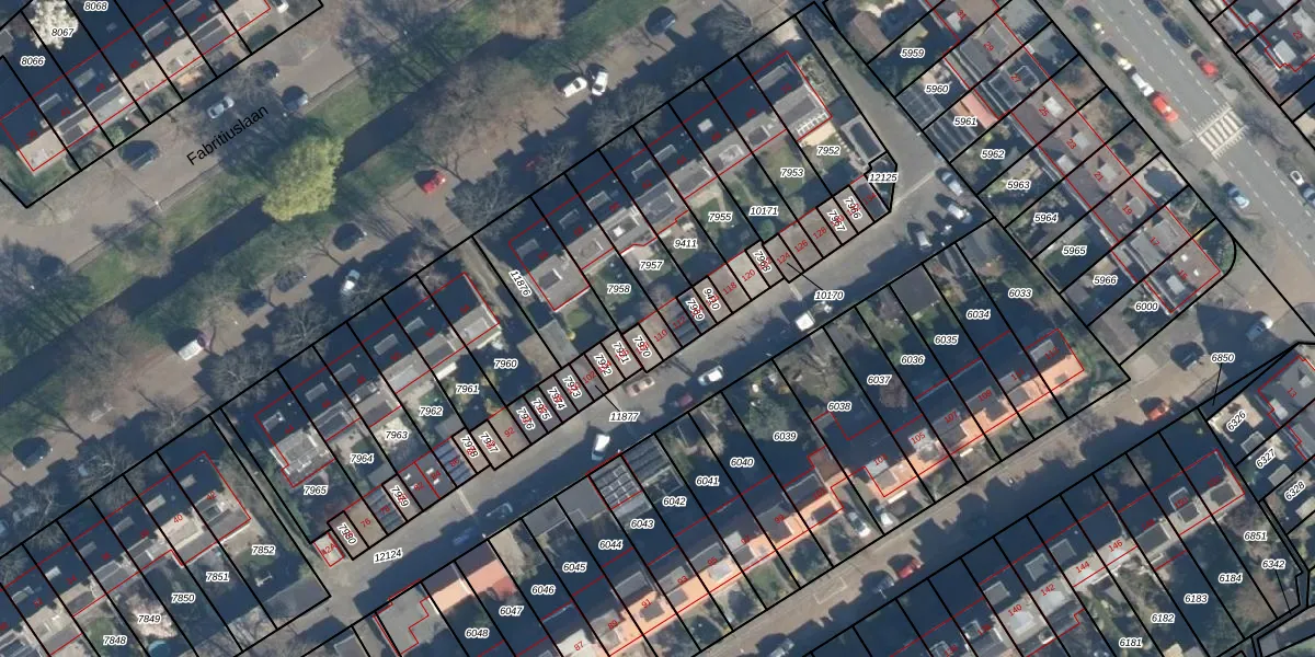 Het perceel waarop Fabritiuslaan 110 staat heeft een oppervlakte van 186 m². Dit is een middelgroot perceel. De perceeloppervlakte wordt geregistreerd door het Kadaster. Gedetailleerde informatie over de maten van dit perceel kunt u vinden in het rapport Kadastrale kaart met maatvoering van Fabritiuslaan 110.