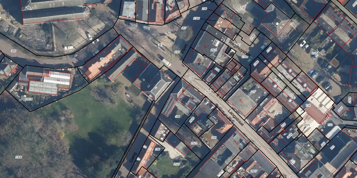Het perceel waarop Gang 1 staat heeft een oppervlakte van 416 m². Dit is een groot perceel. De perceeloppervlakte wordt geregistreerd door het Kadaster. Gedetailleerde informatie over de maten van dit perceel kunt u vinden in het rapport Kadastrale kaart met maatvoering van Gang 1.